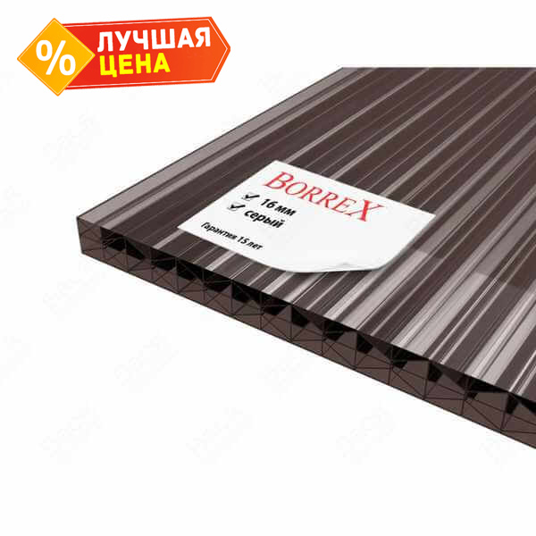 Сотовый поликарбонат 16 мм BORREX серый 2100х6000 мм