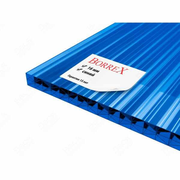 Сотовый поликарбонат 16 мм BORREX синий 2100х12000 мм - это прочный и легкий материал, который отлично подходит для использования в различных строительных и дизайнерских проектах. Поликарбонат обладает высокой прочностью и устойчивостью к воздействию внешних факторов, что делает его идеальным выбором для создания крыш, навесов, ограждений и других конструкций.