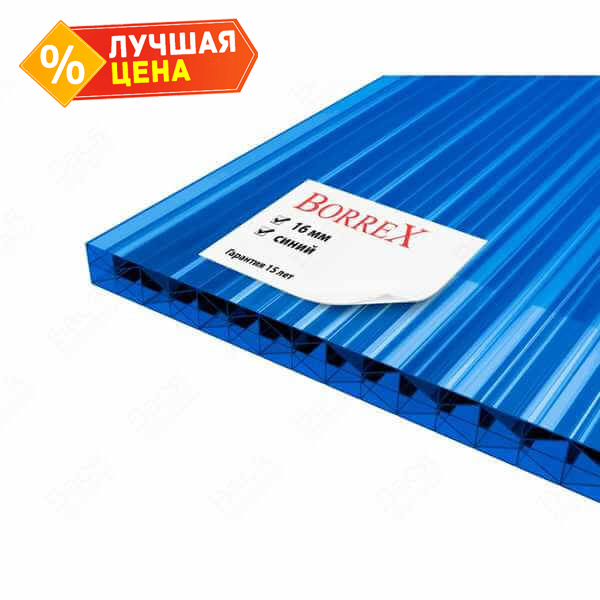 Сотовый поликарбонат 16 мм BORREX синий 2100х6000 мм