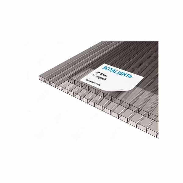 Сотовый поликарбонат 6 мм SOTALIGHT серый 2100х6000 мм
