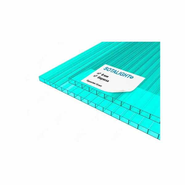 Сотовый поликарбонат 8 мм SOTALIGHT бирюза 2100х6000 мм
