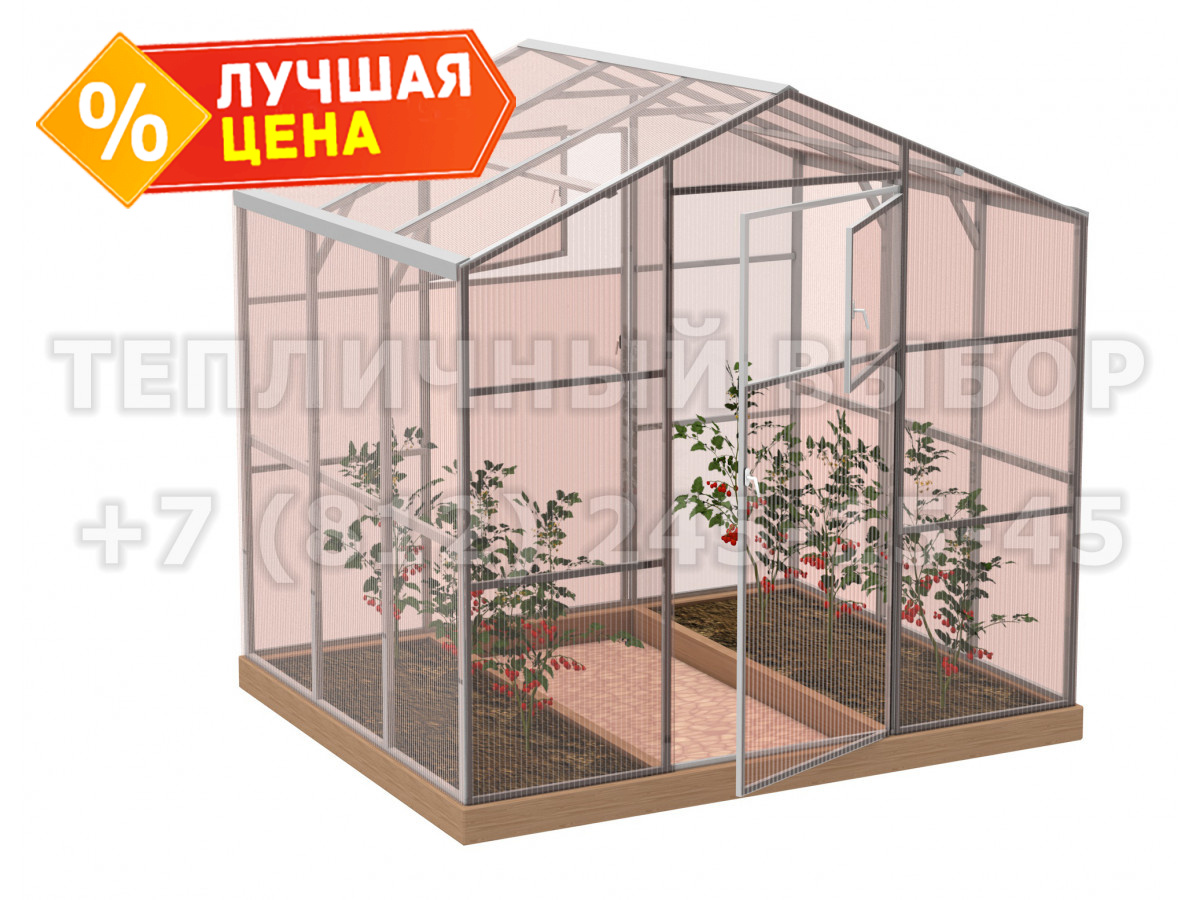 Теплица из поликарбоната-фито Усиленная Домиком 2,3х2 h=2.1 м профиль 25х25 мм