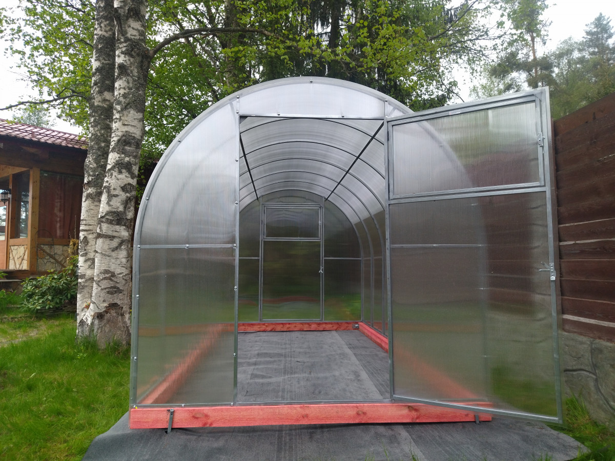 В разобранном виде теплица состоит из отдельных сварных рам в виде дуги.