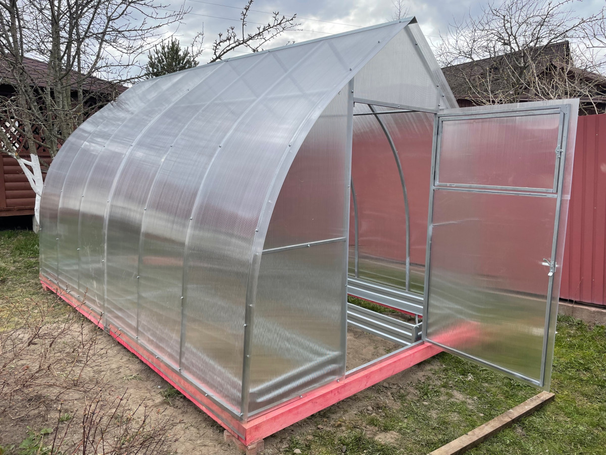 Теплица из поликарбоната Усиленная Капелька 2,5х4 h=2.3 м профиль 25х25 мм