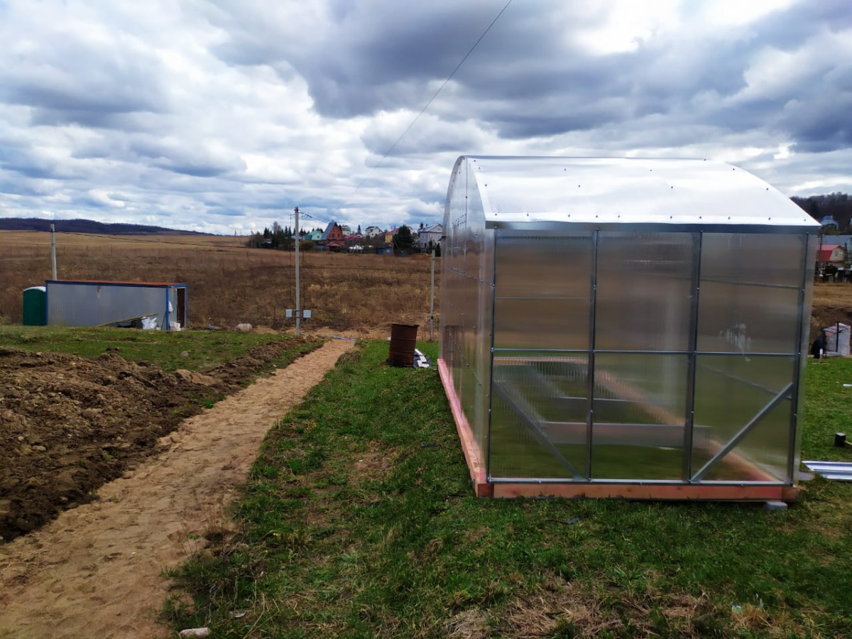 Возможна самостоятельная сборка по подробной инструкции. Сборка теплицы монтажниками-профессионалами компании занимает порядка 5 часов. В качестве основания рекомендуется использовать бетонный, либо деревянный фундамент из бруса. Предварительно брус необходимо обработать антисептиком. Полный комплект состоит из: