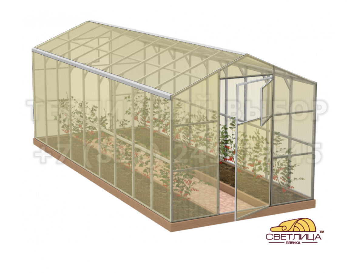 • укрывной материал - легендарная пленка «Светлица» толщиной 150 мкм, имеет уникальный состав, который делает ее прочной, эластичной и долговечной (не менее 7 лет без снятия на зиму);
